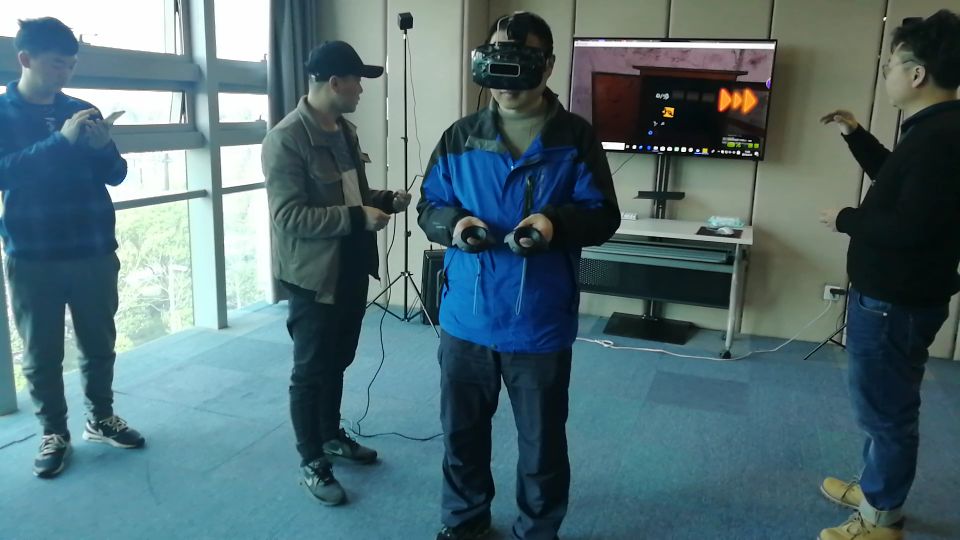 随后,在项目经理洪新龙的带领下,市政工程技术专业部一行人参观了公司的VR体验中心,洪新龙经理为教师们讲解并演习了VR技术在产业中的应用以及已开发的教学应用项目,教师们也亲身体验了VR教育的“沉浸式学习”并结合各自的专业领域提出了各自的感受与改进意见。