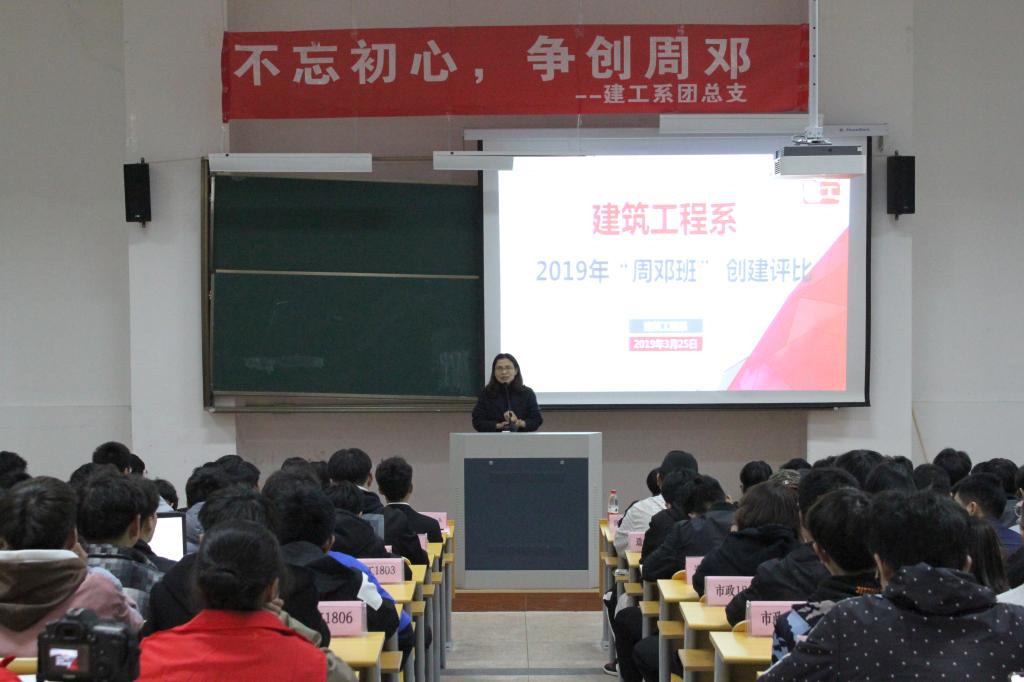 情系人民唯忘己,勇创周邓慰伟人。3月25日傍晚,建筑工程系第十一届周邓班预选评审会在钱江楼C103顺利举行。建筑工程系党总支书记方志英、辅导员傅晓艳、何文亮、洪乾坤、范周龄、王楠楠作为评审嘉宾应邀出席此次评审会,全系17级团学干部、18级学生代表参加本次大会。本次评审会的主题为"不忘初心,争创周邓"。