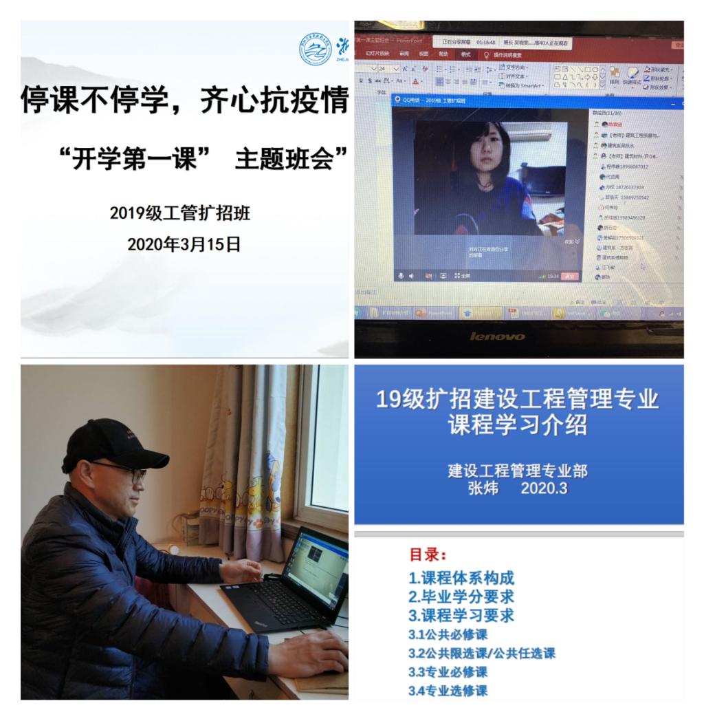 为积极响应教育部“停课不停学”的号召,认真执行“标准不降、模式多元、学制灵活”的扩招教学原则,建设工程管理专业根据专业人才培养方案的要求及社会生源的特点和实际情况,坚持“因材施教、按需施教”,积极谋划并创新教学组织形式,采取集中教学与分散教学相结合、校内教学与校外教学相结合、线上教学与线下教学相结合等方式。专业部多次召开线上教学研讨会,围绕如何检查学生课前预习、选用直播平台、提升课堂专注度等切实问题展开充分讨论,群策群力、多管齐下提高在线教学质量。为扩招班顺利开课认真准备授课事务,制定了详尽的教学组织方案,各任课教师也分别利用网络平台建立了线上课程,通过QQ直播、腾讯课堂、钉钉直播等形式开展在线面授,教学工作进展顺利。建设工程管理专业部的老师用实际行动诠释教育工作者在战“疫”中应有的责任与担当,让“教”与“学”不止于课堂。