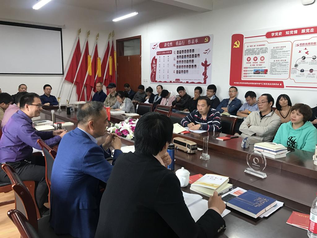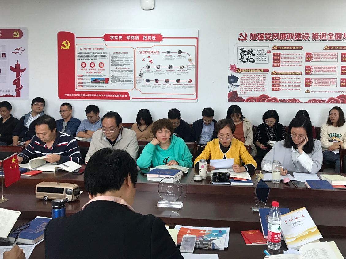 10月21日,机电系党总支“讲政治,学先进,立足岗位勇担当”政治学习会在钱江楼513会议室顺利举行。会议由系党总支书记蒋晓冬主持,机电系全体教师及学生党员参加了本次会议。