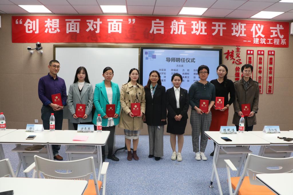 建工系于11月12日中午12:00在钱江楼C315举行了第五期“创想面对面”启航班开班仪式。建工系党总支书记方志英,建工系副主任陈乾浩,学院招就处、翔宇学院指导老师徐宜宜,市政专业部主任林呀,建工专业部主任朱希文,造价专业部主任马知瑶,建工系专任教师郭慧芳,辅导员郑传娟、张梦如出席本次开班仪式。