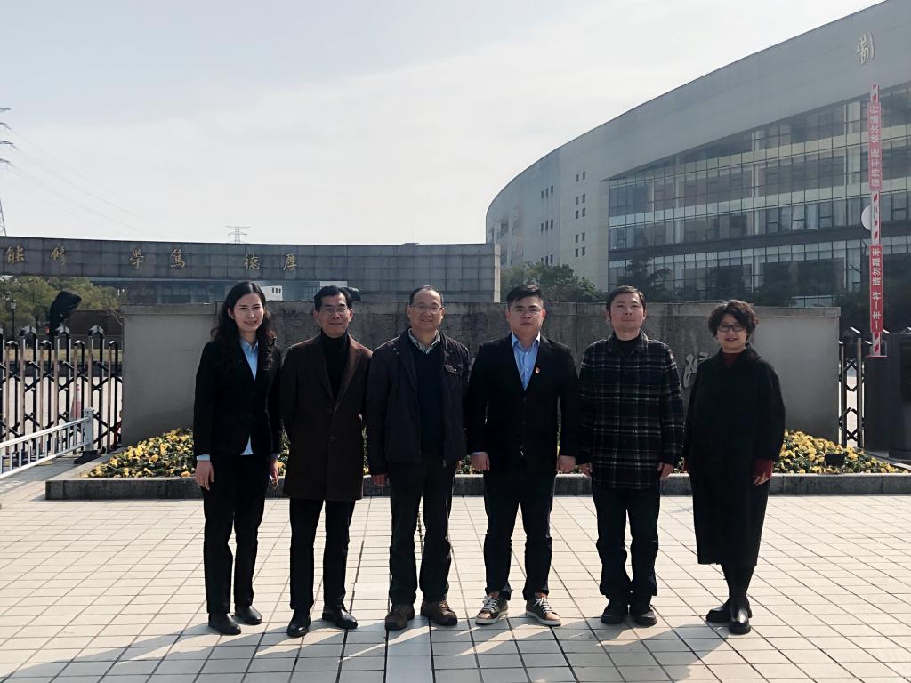 校友徐圣贤先生(右3)与浙江省教育厅教育发展中心领导、学校老师合影