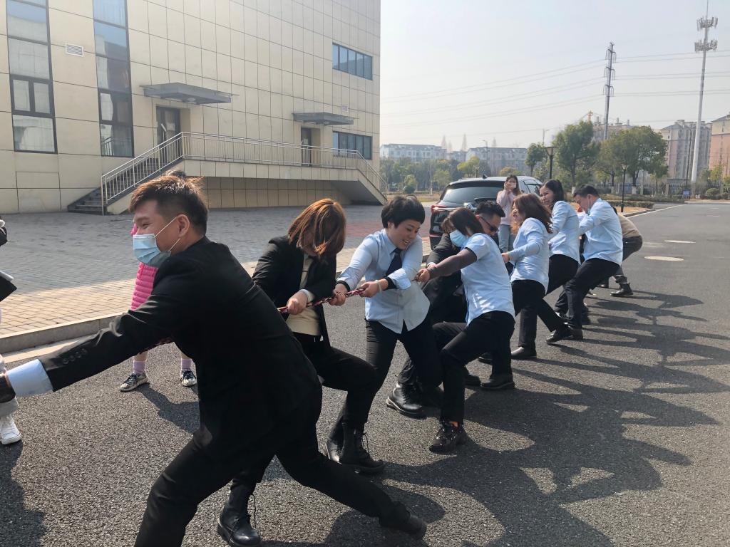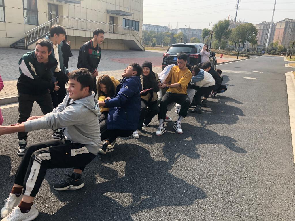拔河活动后,浙江鸿翔生活服务集团公司精英与留校学生合影