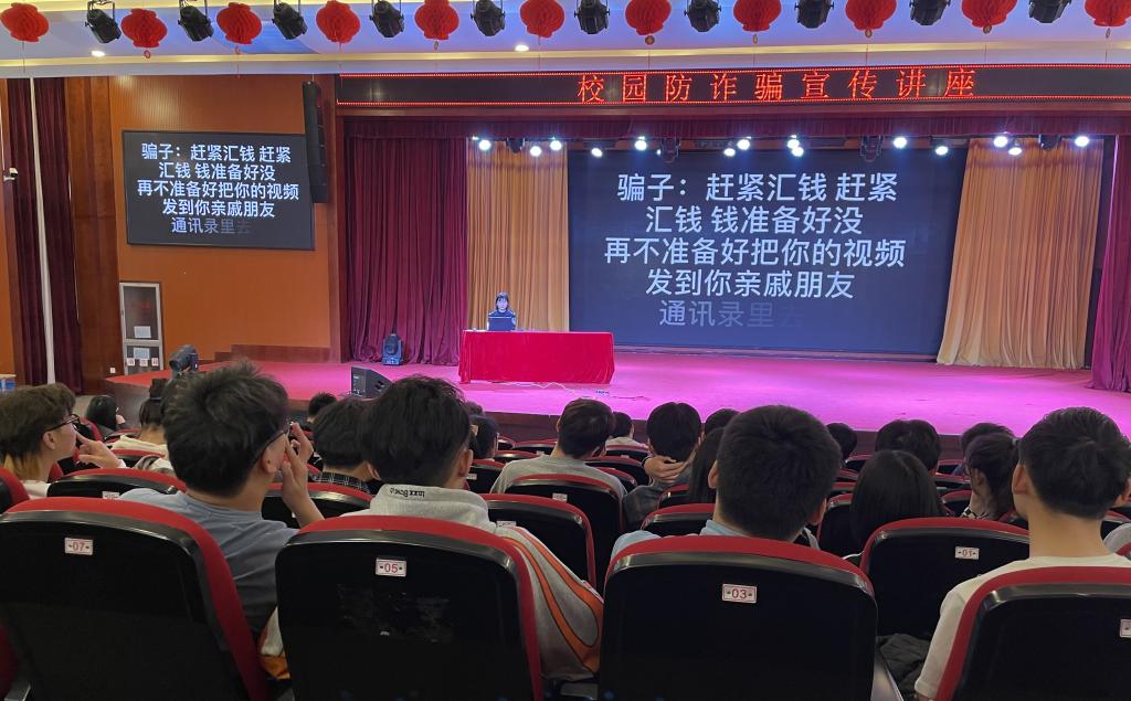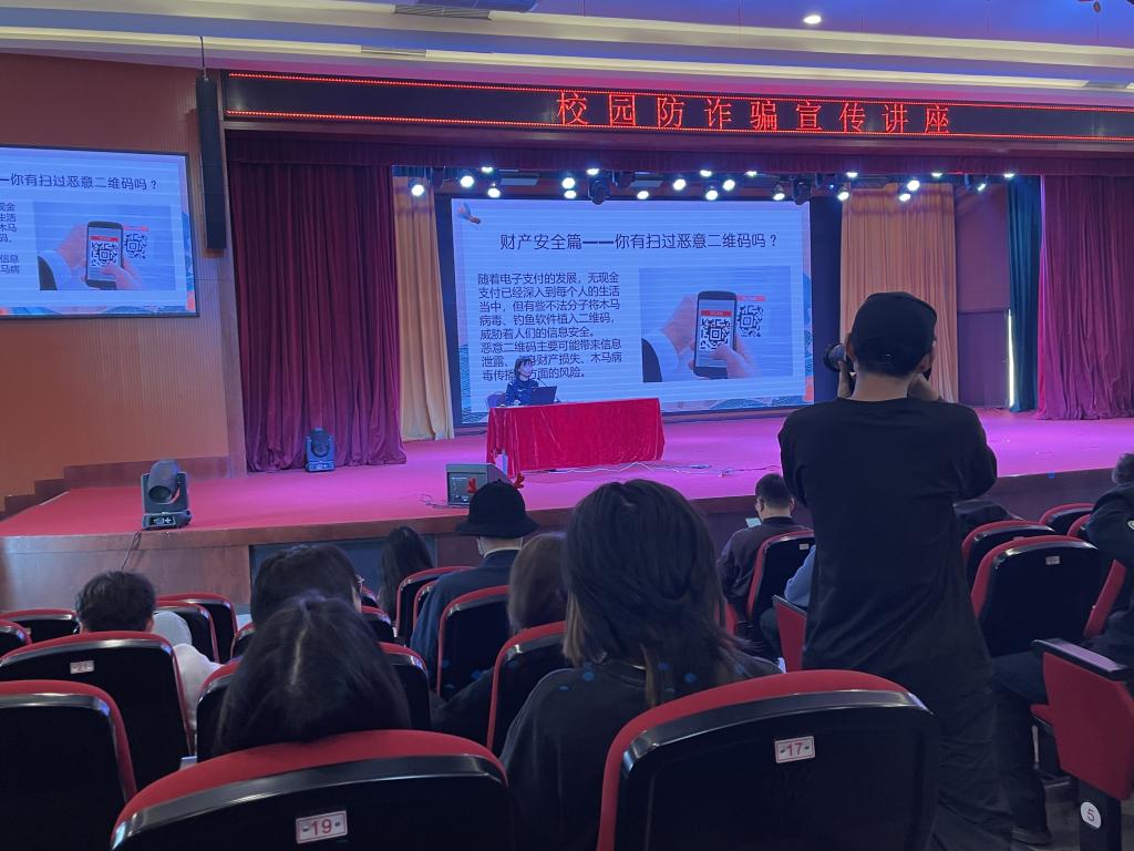 为贯彻落实省教育厅、省公安厅关于进一步加强电信网络诈骗风险防范工作的通知要求,提高广大师生辨别诈骗手法以及自我信息保护的能力,4月6日下午, 萧山公安分局宁围派出所民警汤春利警官为我校大一、大二的同学们带来了一场别开生面的“校园防诈骗宣传”主题讲座。此次讲座地点在我校水韵剧场,由保卫处和学工部共同举办。