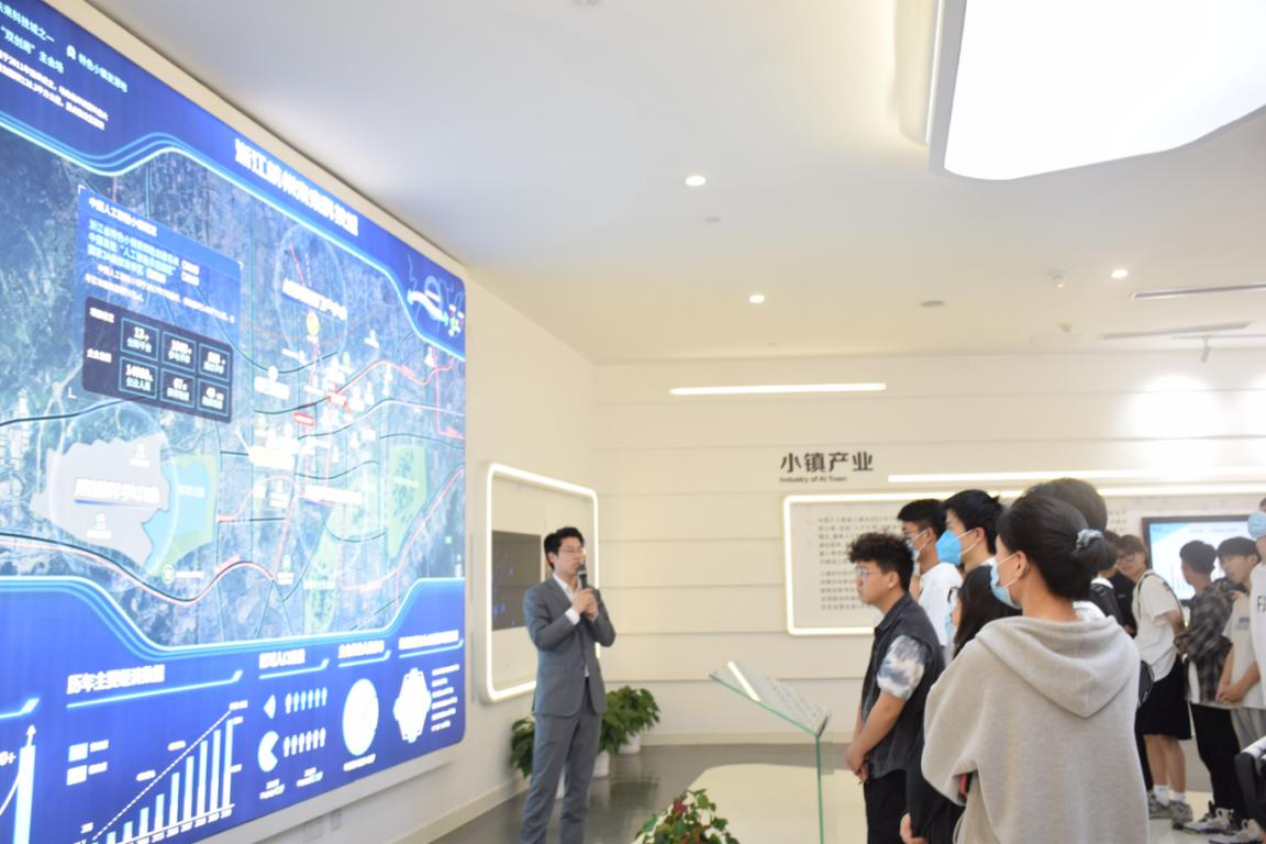 同学们在小镇讲解员的带领下参观了人工智能小镇展厅,了解小镇的环境和内部运作情况,观看了人工智能在公共服务业的场景应用,人工智能语音识别的前沿行业应用等内容,让同学们对人工智能的发展有了一个比较具体准确的认识,激发同学们对水利专业未来智能化创新发展的学习积极性。