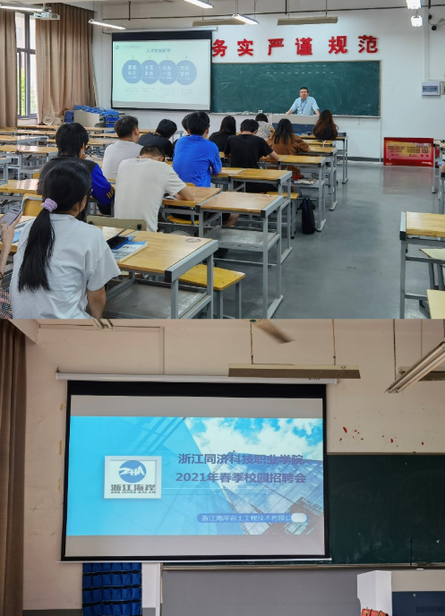 为切实做好水利学院2021届毕业生就业以及2022届毕业生跟岗实习准备工作,积极为水利行业用人单位输送人才,为每一位学生搭建平台寻找合适岗位,6月4日下午,水利学院邀请上海市水利工程集团有限公司、浙江海岸岩土工程技术有限公司来我院为学生开展招聘宣讲。