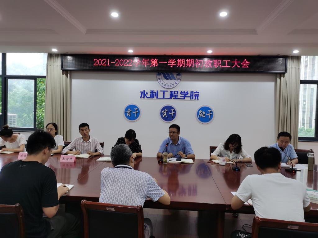 新学期新风貌,新学年新篇章。9月8日上午,水利学院召开2021-2022学年第一学期期初教职工大会。水利学院院长刘进宝、党总支书记叶乐、副院长金斌斌、副书记石杨出席会议,水利学院全体教职工参加会议。会议由刘进宝院长主持。