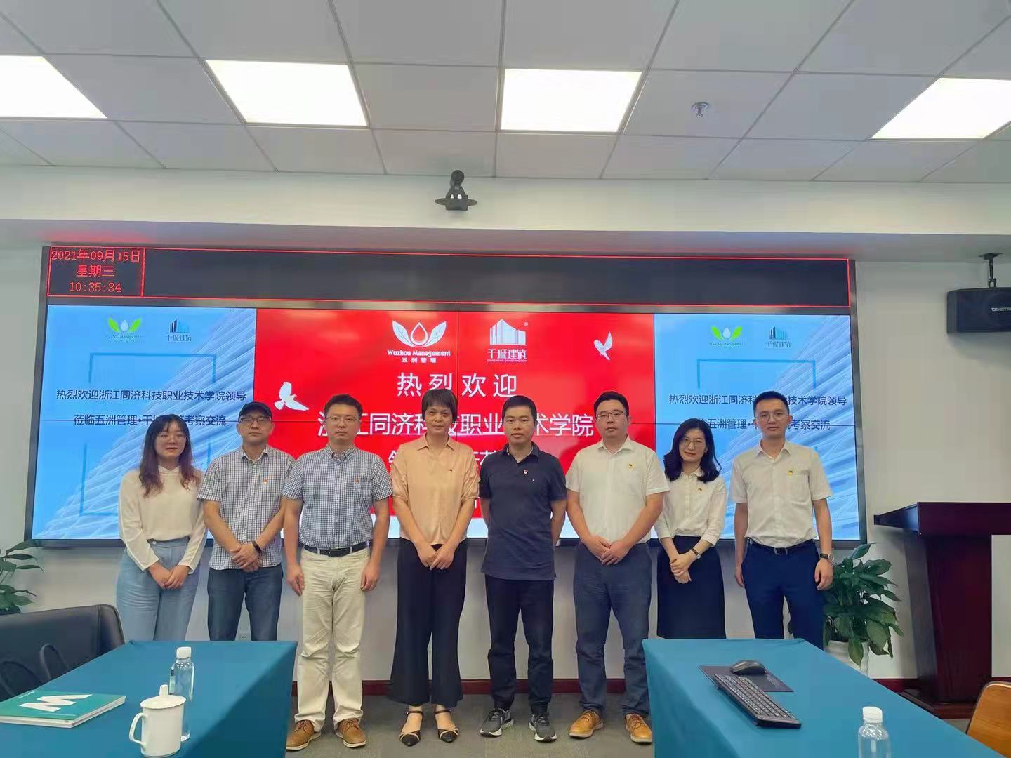 为推进党史学习教育“我为群众办实事、我为企业解难题、我为基层减负担”专题实践活动,继续践行产教融合校企“双元”育人模式,2021年9月15日上午,建筑工程学院院长杨海平、党总支书记蒋晓冬等一行人前往浙江五洲工程项目管理有限公司共商校企党建工作,以党建引领校企合作。浙江五洲工程项目管理有限公司党委书记瞿龙、党群办主任喻鹏飞等出席了本次会议。