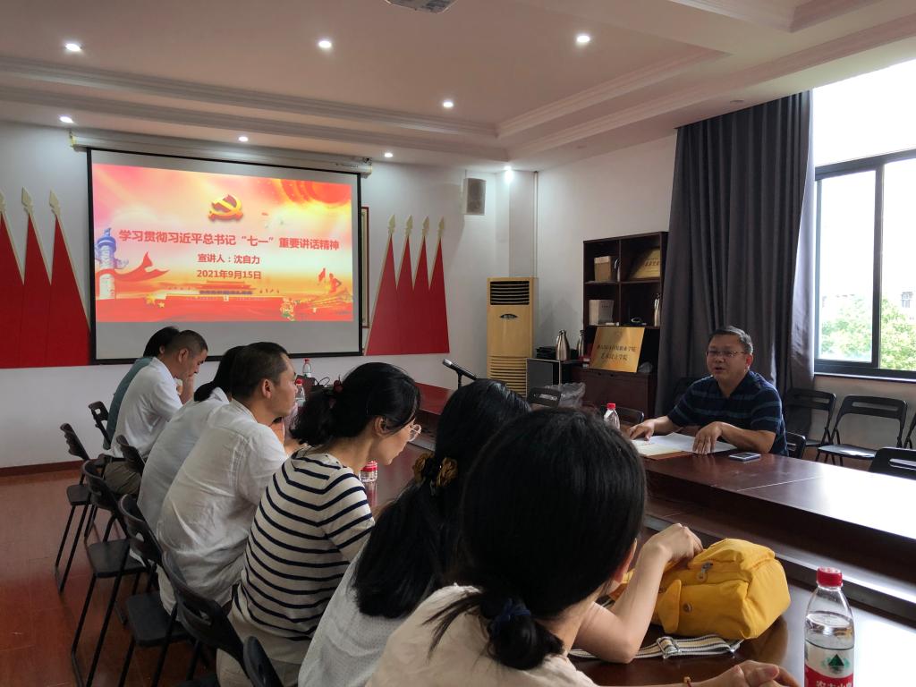 沈自力同志为与会人员详细讲解了党的百年奋斗历程,解析了伟大建党精神的内涵和意义,分析了中国共产党为实现中华民族伟大复兴取得的四个伟大成就,阐释了党领导中国人民的伟大胜利对中国、世界和科学社会主义的意义,深入挖掘“七一”重要讲话中包含的“水”元素、教育元素和青年元素,分析了百年历程的基本经验和现实启示,阐述了重要讲话中揭示的“中国共产党过去为什么能够成功、未来怎样才能继续成功”的根本所在,希望大家不断提高政治判断力、政治领悟力、政治执行力。