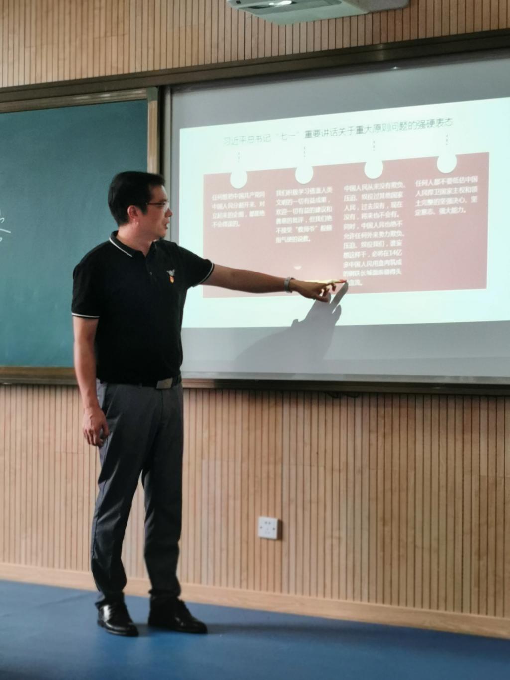 9月15日下午,基础部(马院)党支部在A519召开第九次政治理论学习暨专题党课学习会,基础部(马院)全体教师党员参加会议,学校校长梁国钱,学校党委委员、宣传部长吴敏启分别结合习近平“七一”重要讲话精神进行专题宣讲,宣讲会由基础部(马院)党支部副书记张春平主持。