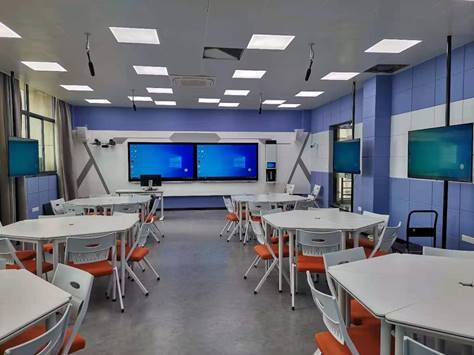 新建智慧教室借助互动教学软件、研讨协作、无线投屏等实现信息技术与教学模式深度融合,实现分组教学,突出学生主动性,教学互动性;突破学习时间和空间的条件限制,让广大学生可以随时学,随地学,反复学,交流学;很好地实现了信息技术与课程的深度融合,可以为师生提供优化高效的学习环境,以支撑新型教学模式核心,全面支持与推动混合式学习、研讨型课堂等新型教学模式的推进与完善,实现智慧课堂教学。