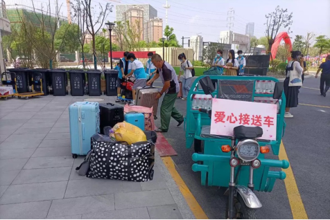 后勤车队提前对接站班车进行维护保养、内外清洁和车厢内消杀工作。联合萧山公交公司,提前规划好接站路线,安排了多辆大巴车到火车东站、九堡客运中心等站点迎接新生。据统计,新生报到期间,后勤大巴车队接送学生、家长往返各站点共30余车次。在校园内,后勤工作人员和学生志愿者一起,努力做好校内最后一公里的行李运送服务工作,每一个环节紧紧相扣,让新生体会到家的温暖。