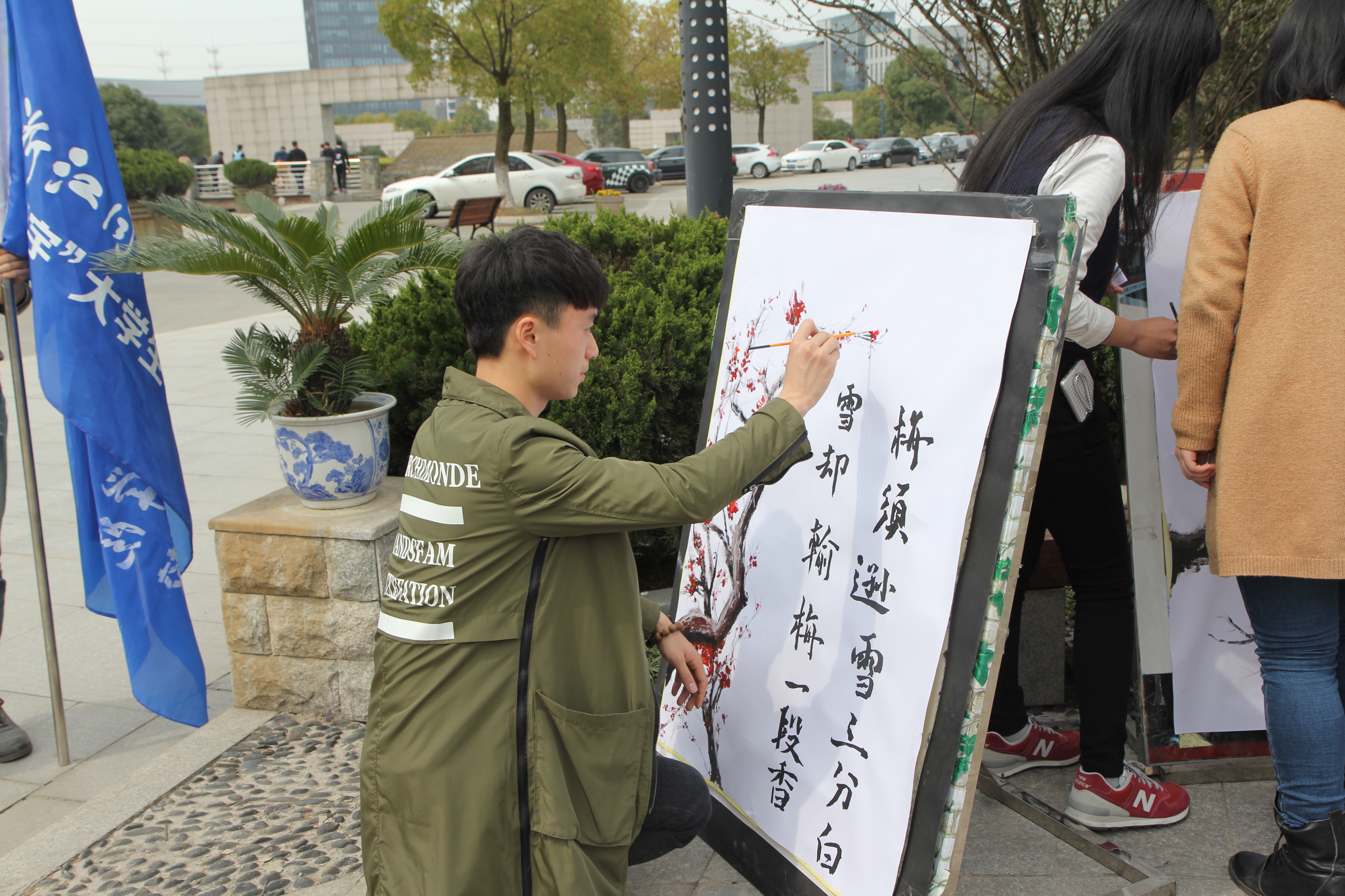 为纪念伟大无产阶级革命家、政治家周恩来同志诞辰118周年,3月4日中午,学院“翔宇”大学生骨干精英学校第二期学员班全体学员在周恩来铜像广场开展为纪念活动。 “翔宇”第二期学员班班长范成龙带领全体成员向周恩来铜像宣誓,大家怀着崇敬心情,深情缅怀周恩来同志为党、为人民鞠躬尽瘁的伟大情怀和独特的人格魅力,表示要自觉学习传承周恩来精神,更好地践行社会主义核心价值观,为实现中华民族的伟大复兴的中国梦作出自己的新贡献。翔宇班班委带来集体诗朗诵《海棠花祭》,同学们用深沉挚厚的情感朗诵这首由邓颖超为怀念周总理而做的诗,在场的所有人都被邓颖超与周恩来之间的那超越爱情的情感更久久地萦绕心头。 纪念活动结束后,全体成员手执画笔在纸上绘出腊梅花,充分表达对周恩来同志的缅怀之情。