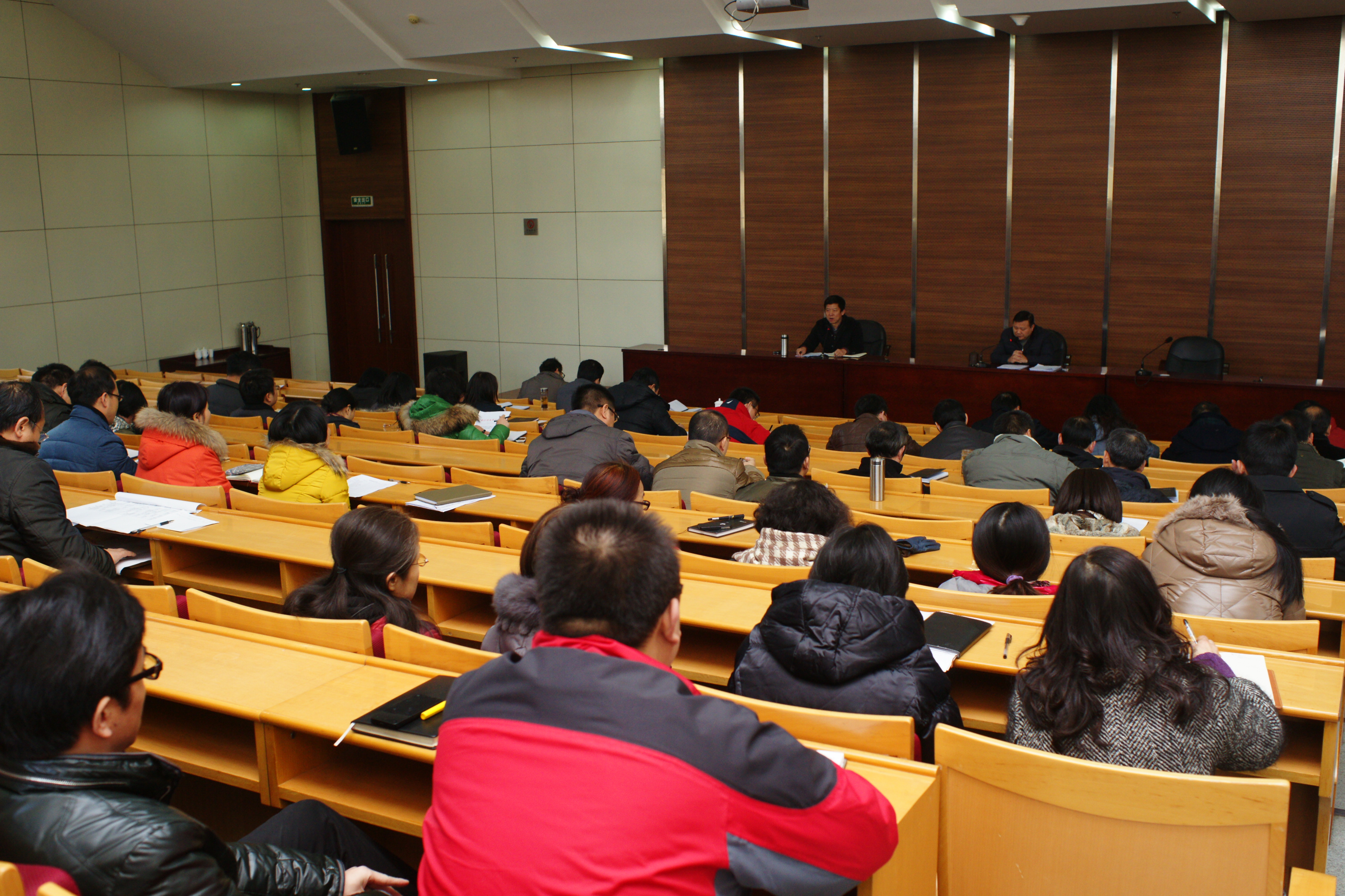 12月27日下午,学院第四次党委理论学习中心组扩大会议在行政楼一楼报告厅召开,院党委书记丁坚钢作了学习贯彻习近平总书记系列讲话精神的专题讲座,全体院领导、科以上干部及副高以上职称人员参加大会。党委副书记郑贞宝主持。