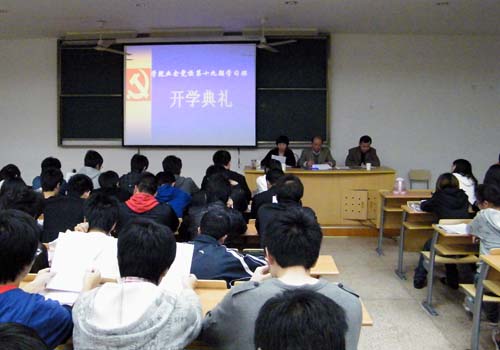 在全院上下扎实开展“育人成才先锋”创先争优活动之际,学院业余党校第十九期学习班于10月26日晚18:30,在水利机电楼隆重举行开学典礼。典礼由学工部副部长、学生处副处长、业余党校校务委员会副主任竺波主持,院团委副书记、业余党校校务委员会办公室主任黄暖宣读了本期学习班课程及相关纪律规定,学院党委副书记、副院长、业余党校校务委员会主任陈长生出席典礼并作重要讲话。
